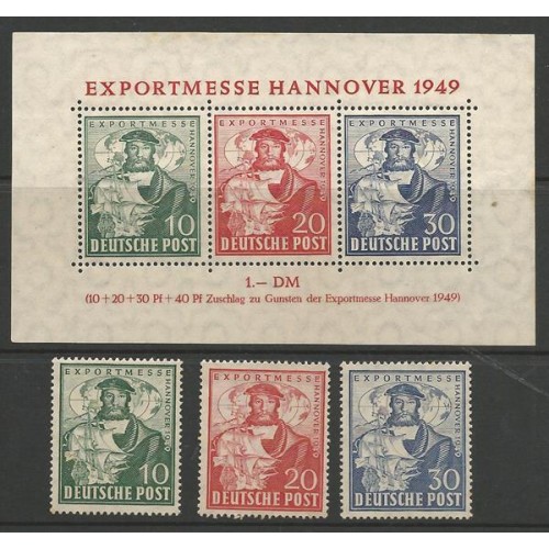 Ano 1949. Selos e Bloco sem carimbo, novos e sem goma. Catálogo Yvert Tellier nº 71/3 + Bloco 1.