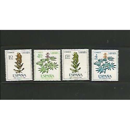 Etiquetas: Espanha - SAHARA - Pro Infância - Flora - gomado - com mancha amarela - Ano 1967 Y&T 242/5