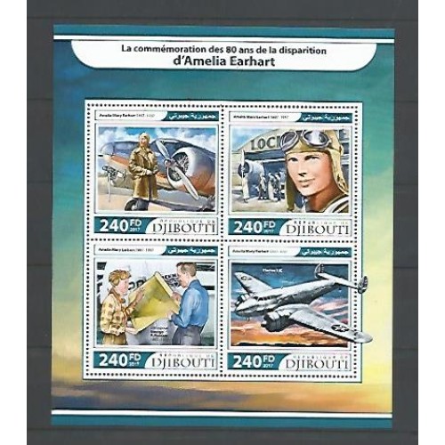 Djibouti - 1476/9 - 80° Desaparecimento de Amelia Earhart - Aviões - Rotas - Transportes