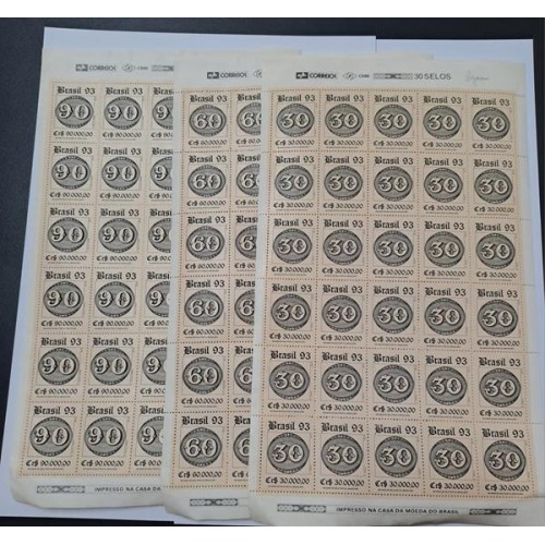 Ano 1993. 3 Folhas com 30 selos.