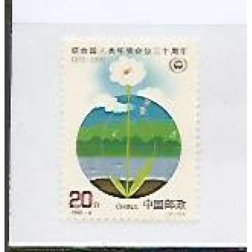 China - 3116 - 20° aniversario da conferencia das nações unidas sobre meio ambiente humano - o selo apresenta o mapa mundi estilizado fauna, flora e paisagem.