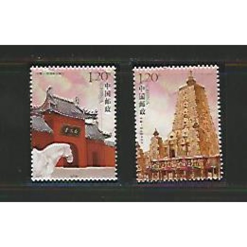 China - 4554/5 - Emissão conjunta entre China e Índia - Templo do Cavalo branco - Báimasi em Luoyang- China e Templo de Mahabodhi - bodhgaya - India - Templos Budistas antigos